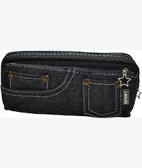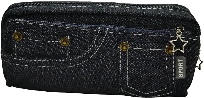 Brainware Dark Blue Denim Pencil Case - Two Zipped Compartments Case, Perfect For Organizing Pencils, Pens, Markers, Erasers, And Other Small Essentials, Can Easily Fit Into School Bag Or Backpack, Rectangular Shape, Dark Blue Colour, No Warranty.